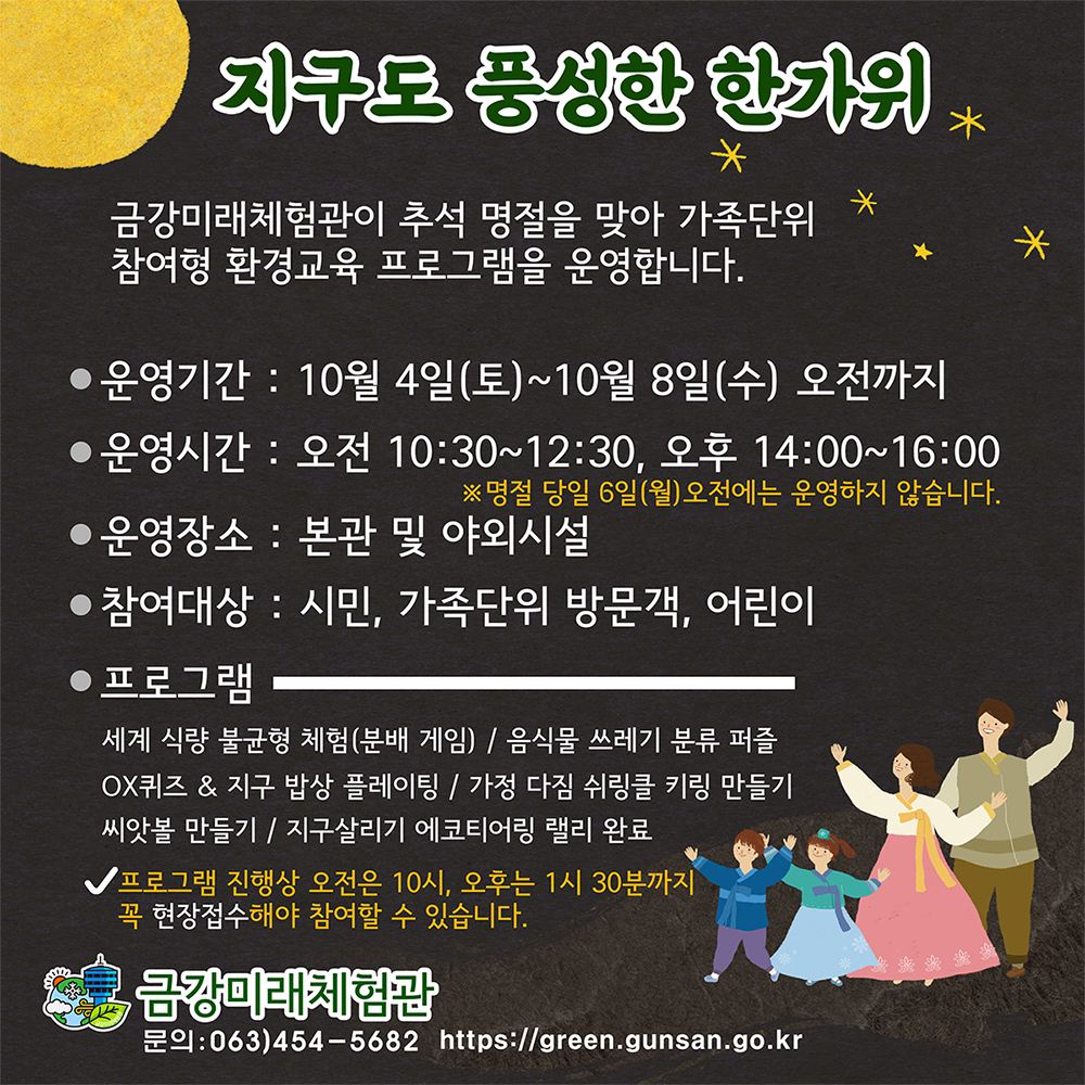 금강미래체험관이 추석 명절을 맞아 가족단위 참여형 환경교육 프로그램을 운영합니다.